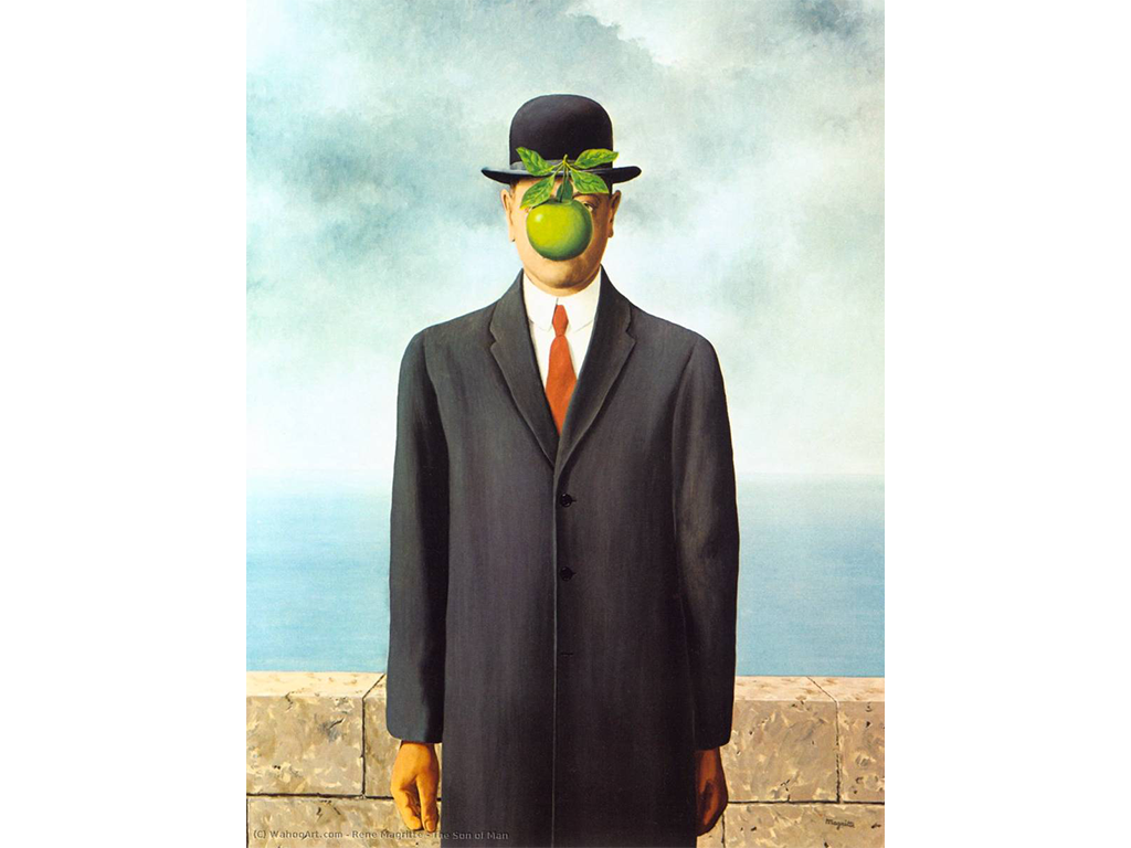 Im Projekt „Polygon“ bestand die Aufgabe darin, ein bekanntes Kunstwerk in eine moderne, grafische Darstellung zu übersetzen. Als Vorlage wählte ich das Gemälde „Der Mann mit dem Apfel im Gesicht“ von René Magritte, da dessen klare Bildsprache und symbolische Wirkung besonders gut für eine abstrakte Neuinterpretation geeignet sind.